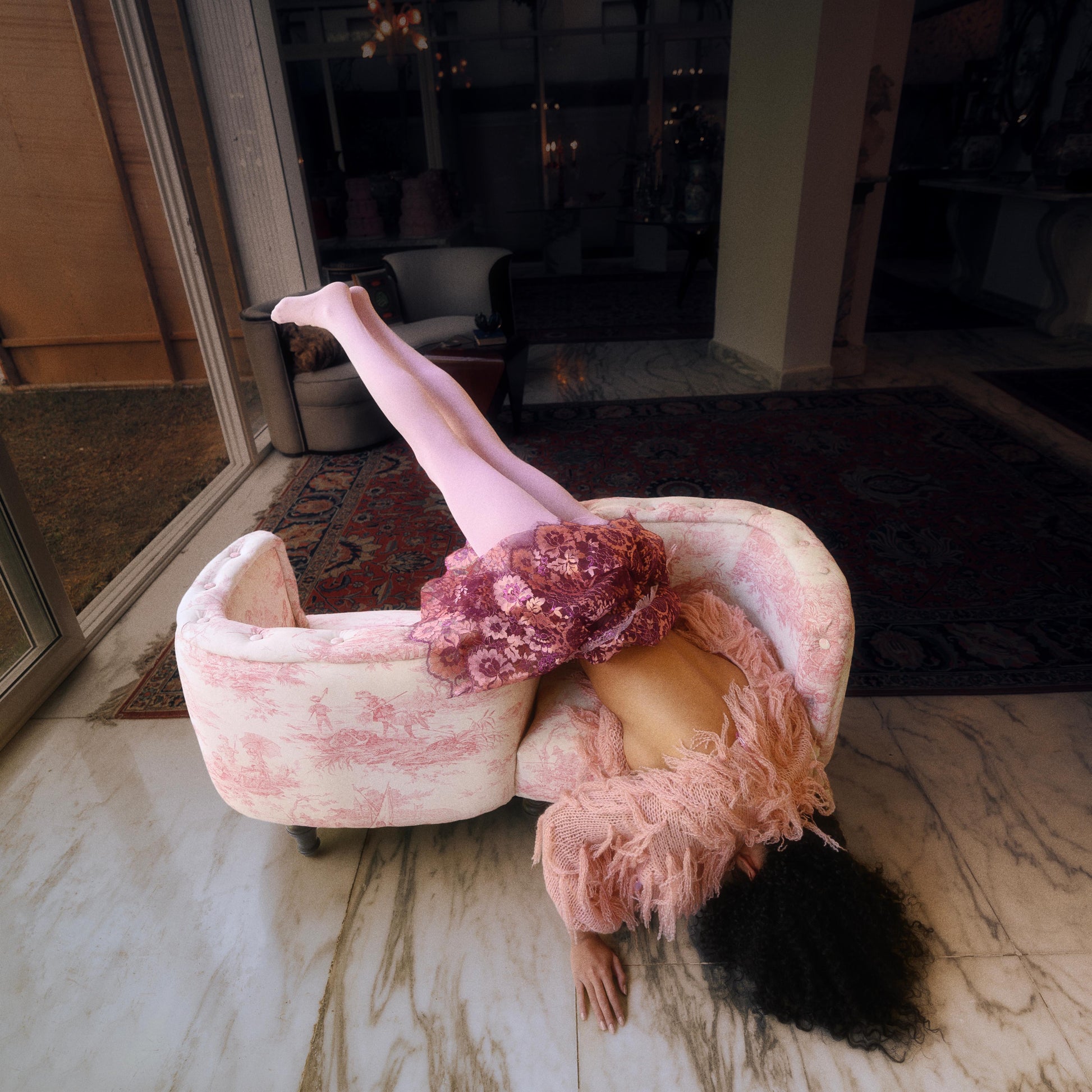A stunning interplay of color and craftsmanship, Tangled Bloom combines the delicate drape of a purple and pink lace skirt with the intricate, handmade crochet top. The skirt, stitched by hand, flows with vibrant hues, each fold a testament to the artistry of its design. The top features cascading strings of embroidery, each stitch telling its own story, creating a harmonious balance of texture and movement. A piece for those who appreciate the artistry of handcrafted details, Tangled Bloom is both bold and ethereal, evoking the beauty of nature's intricate designs.